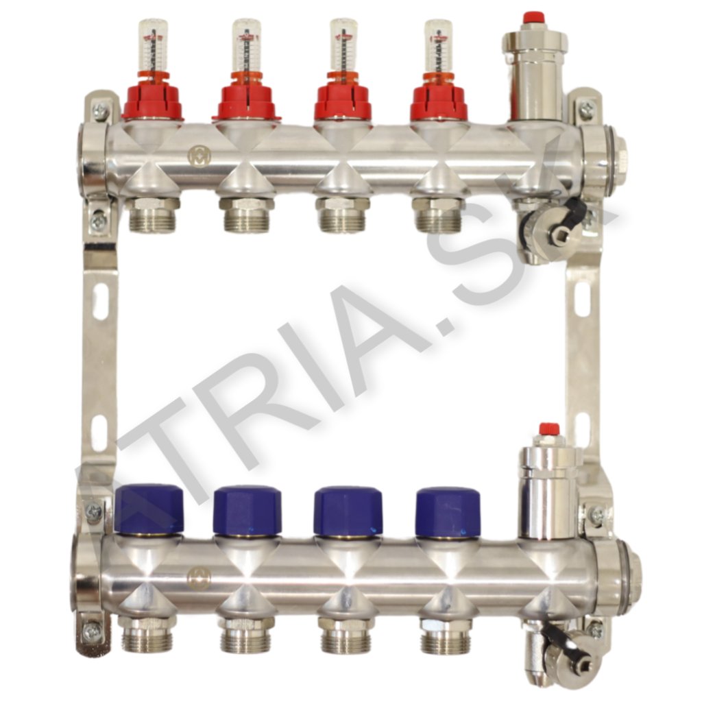 Nerezový rozdeľovač 4 cestný pre podlahové vykurovanie