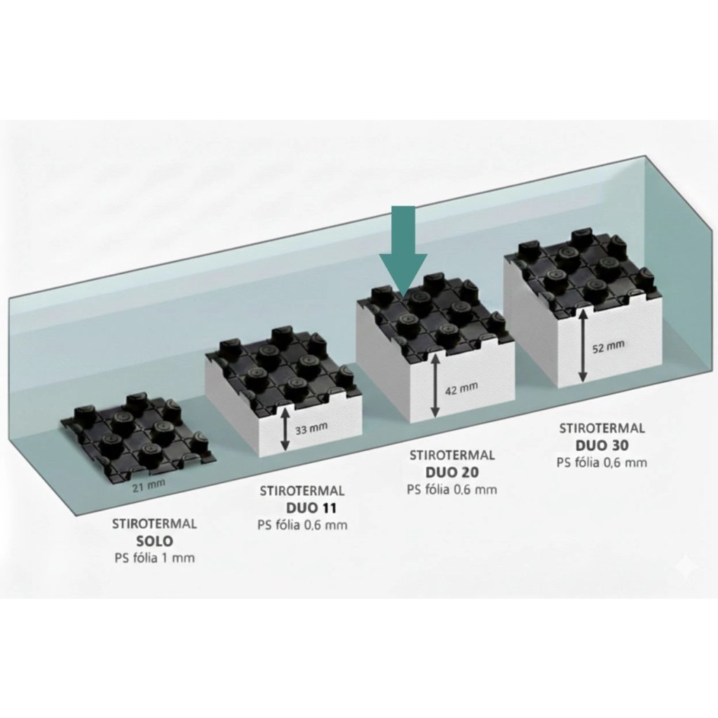 Systémová izolačná polystyrénová doska UHP51 (STIROTERMAL DUO 11) pre podlahové vykurovanie s PS tvrdou fóliou o hrúbke 0,6 mm. Pre veľmi vysoké zataženie.